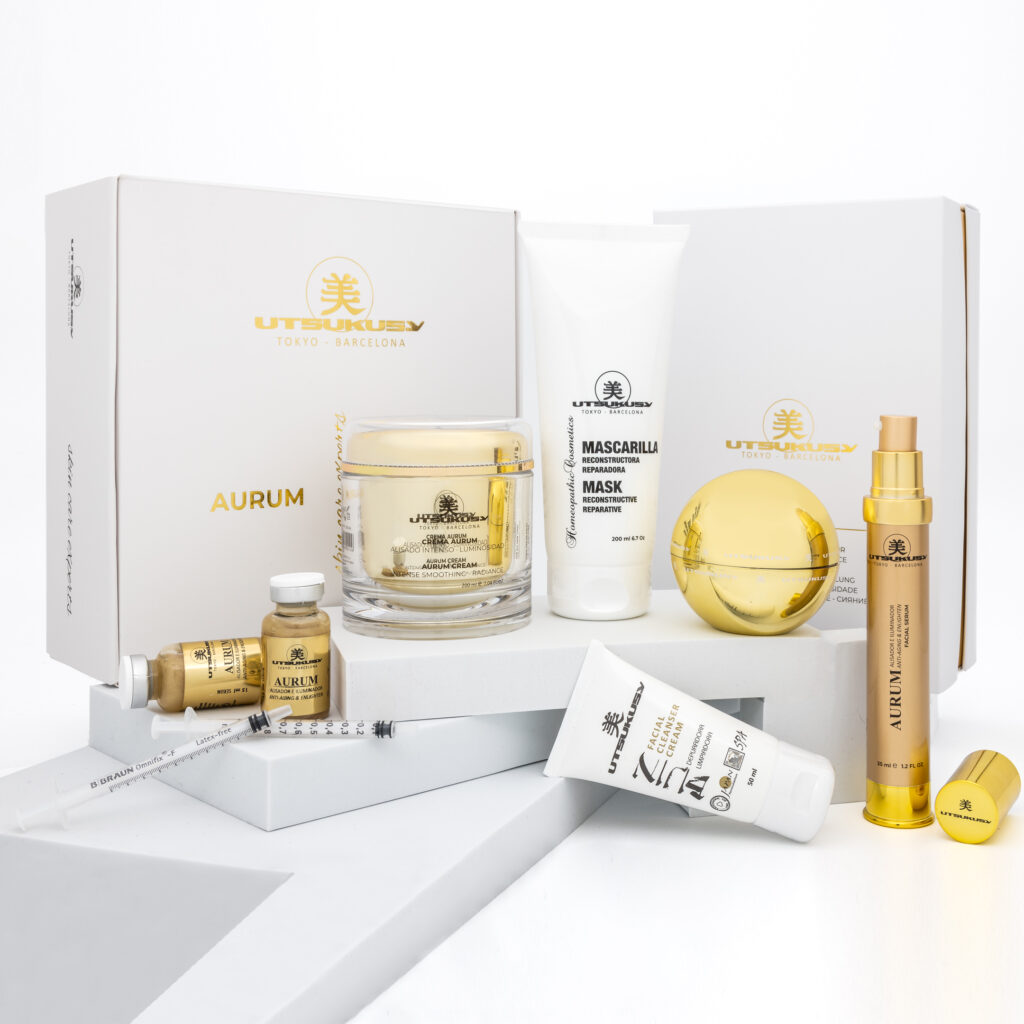 Zabieg ze złotem Utsukusy to Złoty Rytuał Aurum, luksusowy zabieg bankietowy przeznaczony dla skóry zmęczonej, pozbawionej blasku i potrzebującej odżywienia oraz odmłodzenia.